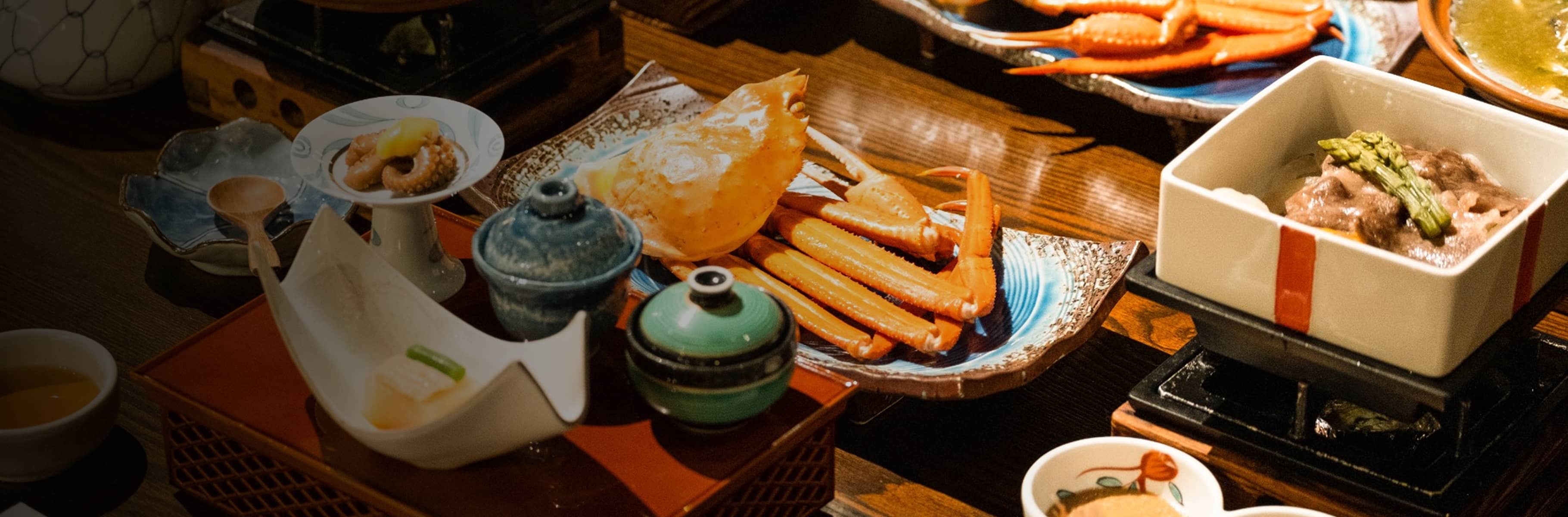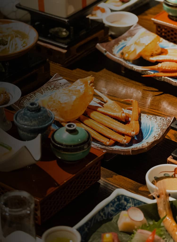 新鮮な魚介をはじめとした 但馬の幸を、食材へのこだわりとともに 皆様にご提供。金波楼でのひとときが、かけがえのないもので ありますように。 -