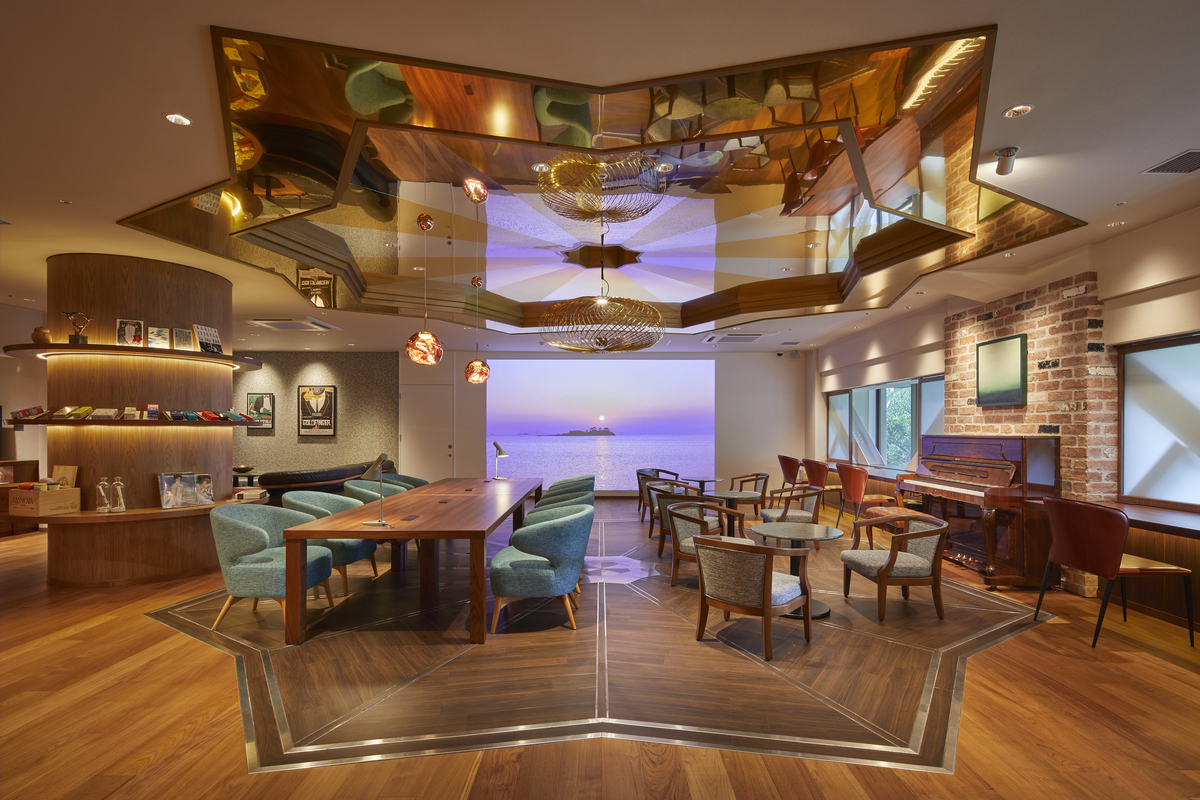 開放的なロビーは日本海に面し、絶好のフォトスポット