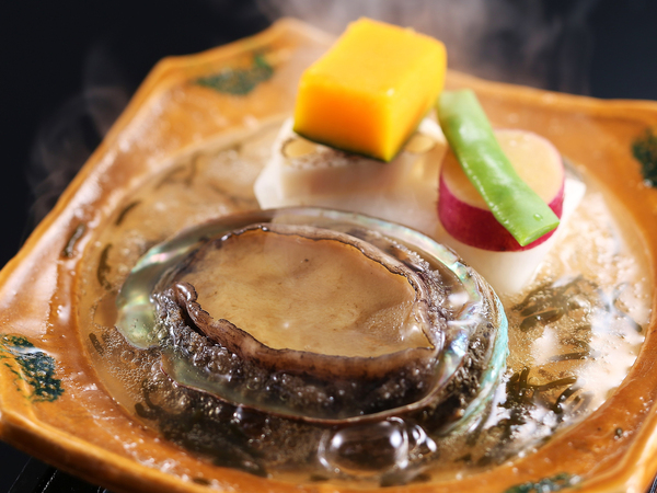 すこし小ぶりのえぞアワビを陶板で蒸焼きにする当ホテルの名物料理です。 料理長こだわりの味噌・醤油でお召し上がりください。 付け合せにはホクホクと美味しい焼野菜を添えており、焦げたソースの香りが程よく食欲をそそる一品。 ※アワビは一口大にカットしています。 ※えぞアワビは約80gの養殖物を使用しています。